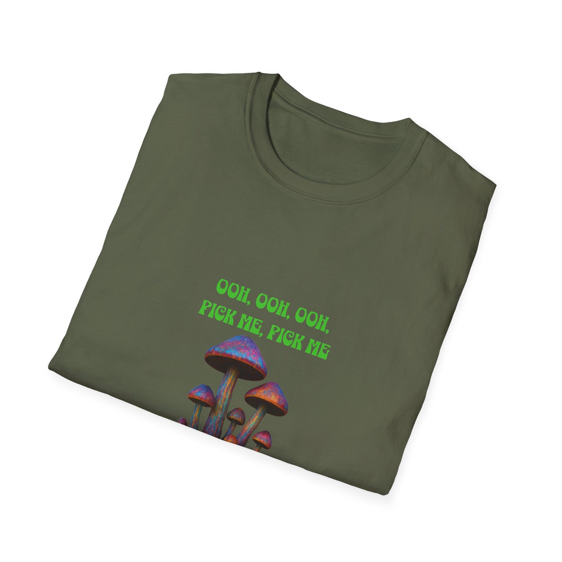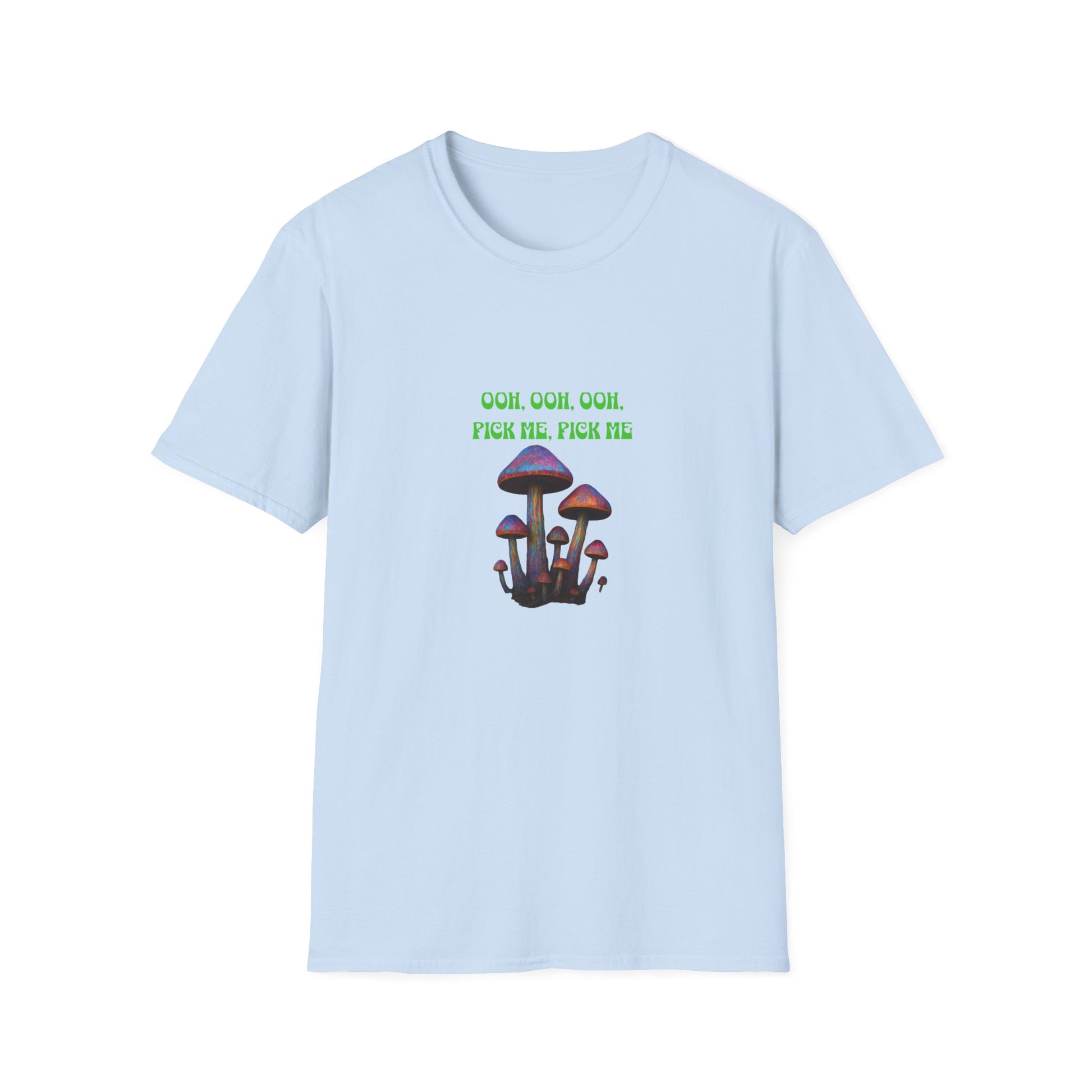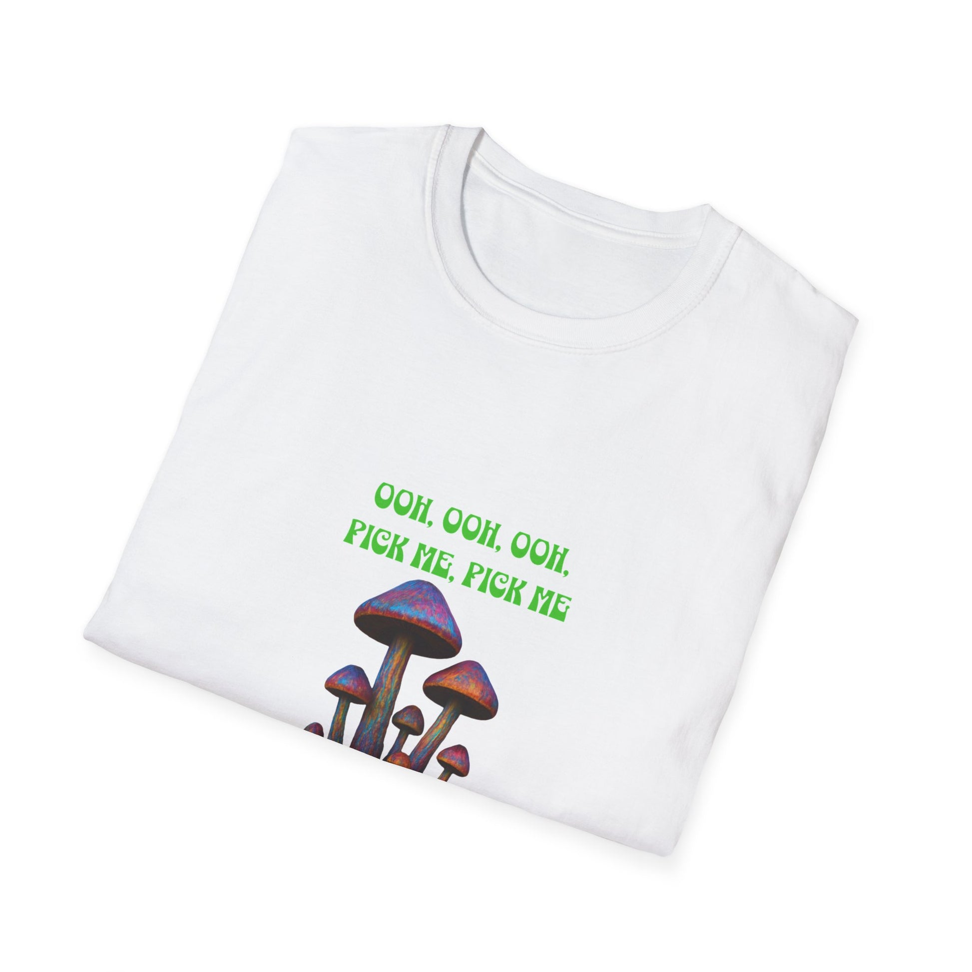 Funny Mushroom Unisex Softstyle T-Shirt, Casual Wear, Gift for Friends, Summer Shirt, Great for Festivals, Humor Tee